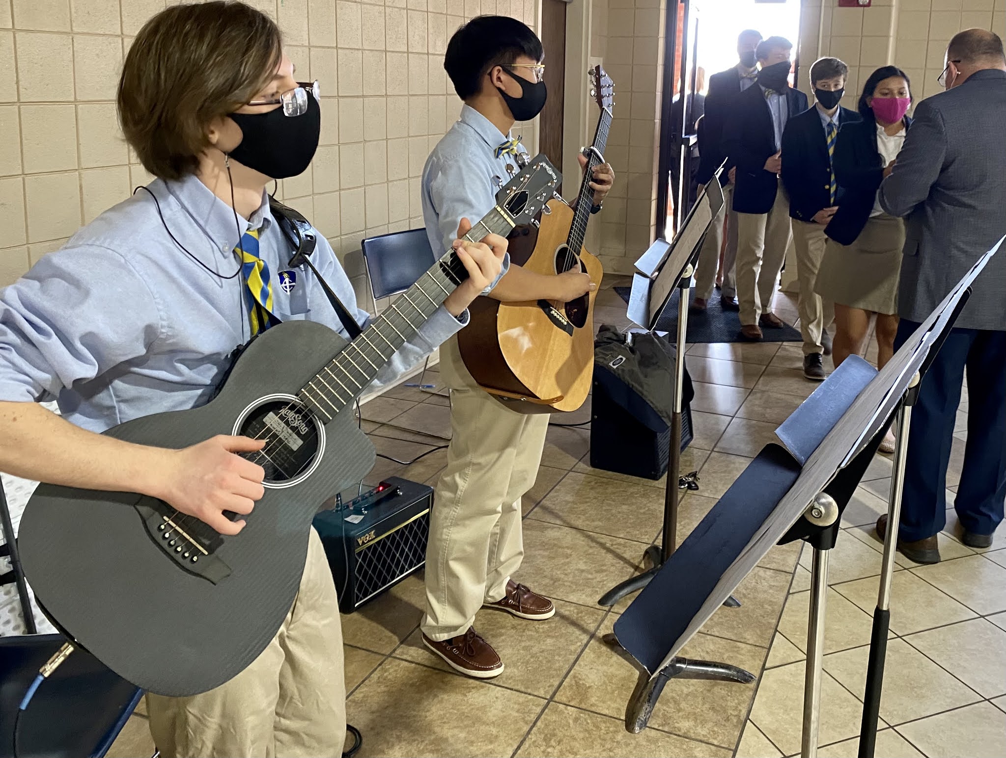 The students at MCPS kicked off the week by choosing one patron saint per classroom during their second-period class. The students designed a saint name card and displayed them in the hallways outside each classroom. Throughout the week, teachers presented lessons about their patron saint. History teachers provided lessons about their room saint in a historical and geographical context. English teachers taught lessons using a piece of literature or film written about or by their classroom saint. In theology class, teachers taught about the lives of their chosen saint. On Friday the marching band performed “When the Saints Go Marching In ” and the choir performed “He Never Failed Me Yet” for the Middle School students. Middle School Assistant Principal Mrs. Julie Wood and Middle School Counselor Mrs. Mary Kelly served the refreshments provided by our MCPS PTC mothers.