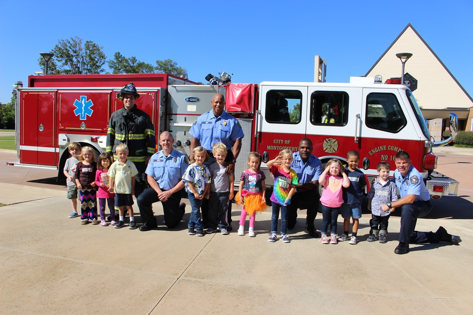 Montgomery Catholic Preparatory School’s Holy Spirit campus welcomed fire fighters from Engine Company No. 16 to campus to help reinforce their lessons in fire safety. Mrs. Mary Walker’s K4 students and Ms. Courtney Kirkland’s K5 students learned all about what fire fighters do and what they wear during a rescue from Fire Fighter Josh Bradley, father of K5 student Ella Bradley. As a special surprise for the classes, Fire Fighter Bradley invited some friends to join him, and they brought their fire truck. They were, Lt. Gray, Sgt. Porterfield, Fire Fighter Kelley and Fire Fighter Rich, these brave first responders helped the MCPS students learn more about fire safety and showed off their big fire truck. The students were thrilled to meet real live heros and Mrs. Walker and Ms. Kirkland were thankful to have these local heros take the time to encourage their students to be aware of fire safety.
