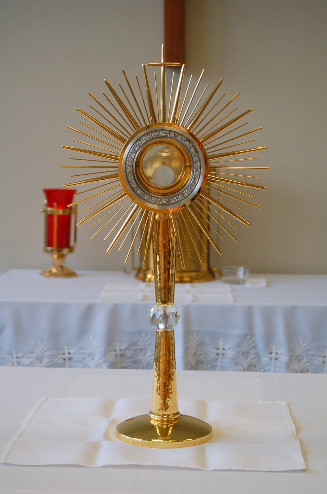 The Eucharist will be exposed in a Monstrance blessed by Pope John Paul II for the specific intention of an increase in vocations to the priesthood and religious life.
