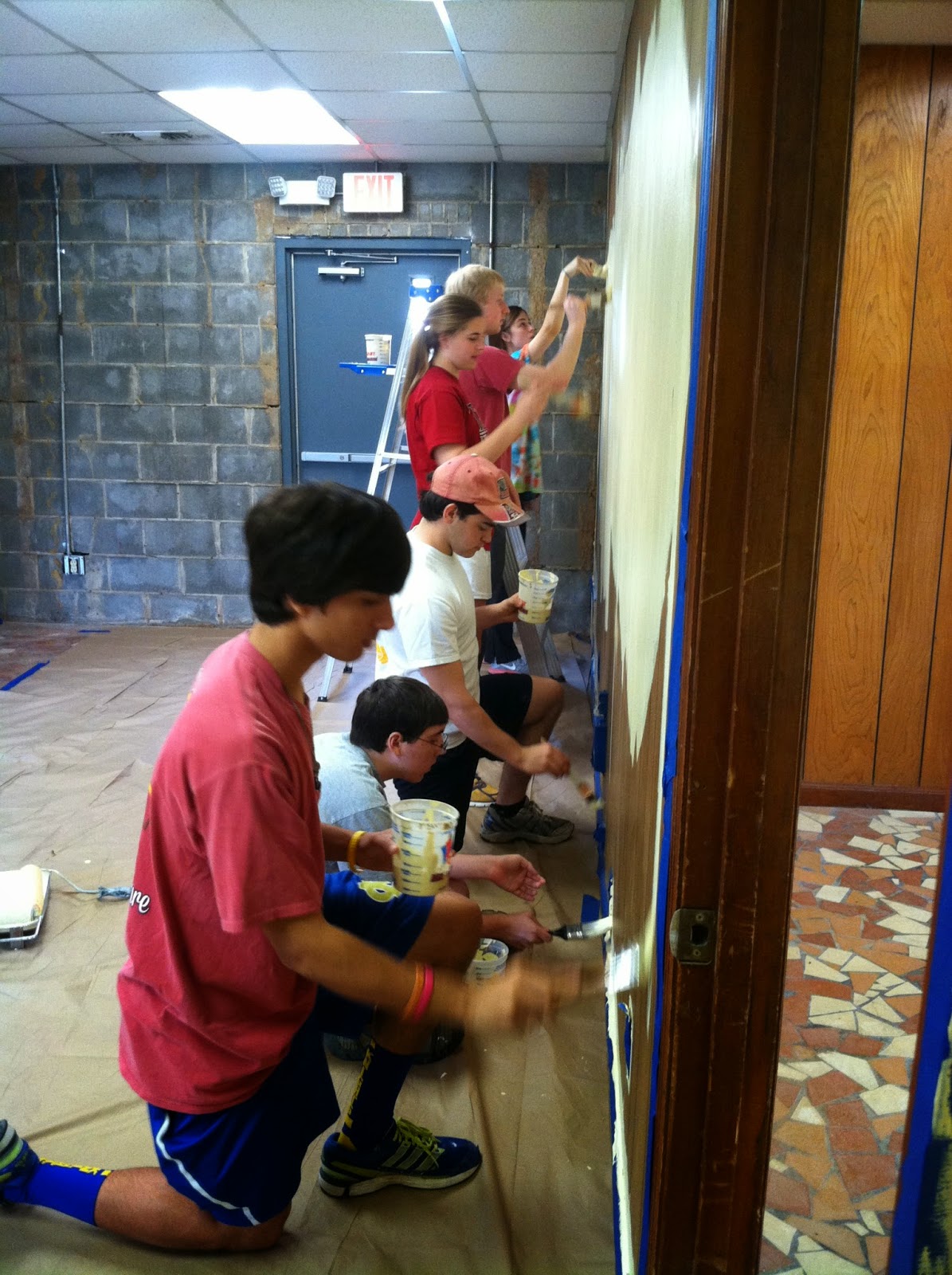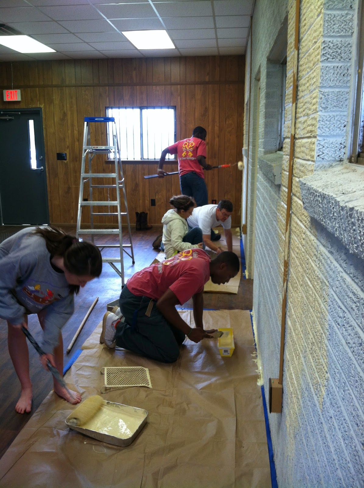 | Daniel LoBello, Derrick Kelly, Alex Castanza, Saraelizabeth Parker, Ryan Norris and Rebecca White paint the future site of the Garden Square Adult Education Center. |