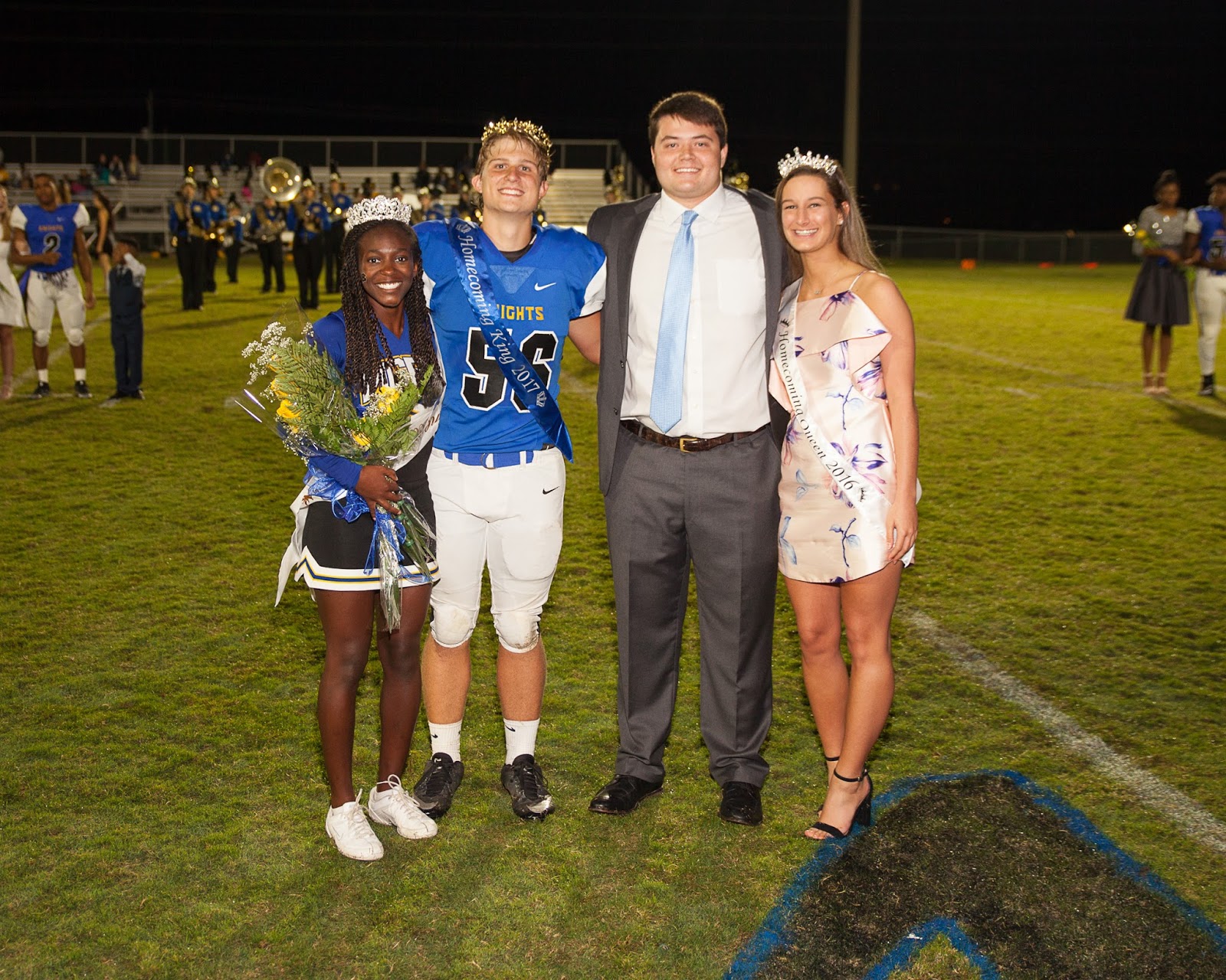 Miss Briana Hollinger and Mr. Luke Craig were announced as the 2017 Montgomery Catholic Homecoming Queen and King at mid-field.