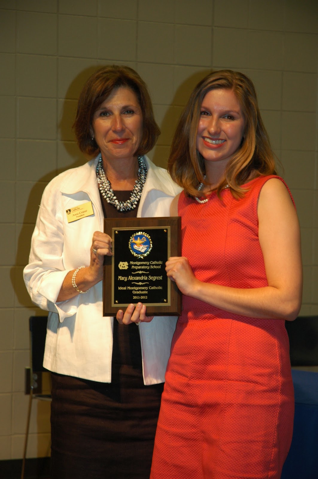 Mrs. Anne Ceasar, president, awarded the Montgomery Catholic Ideal Graduate Award to the student who embodies the overall qualities and talents of an ideal graduate.  Lexie Segrest was named as the Ideal Graduate at Montgomery Catholic.  Lexie has served in many leadership positions throughout her high school career.