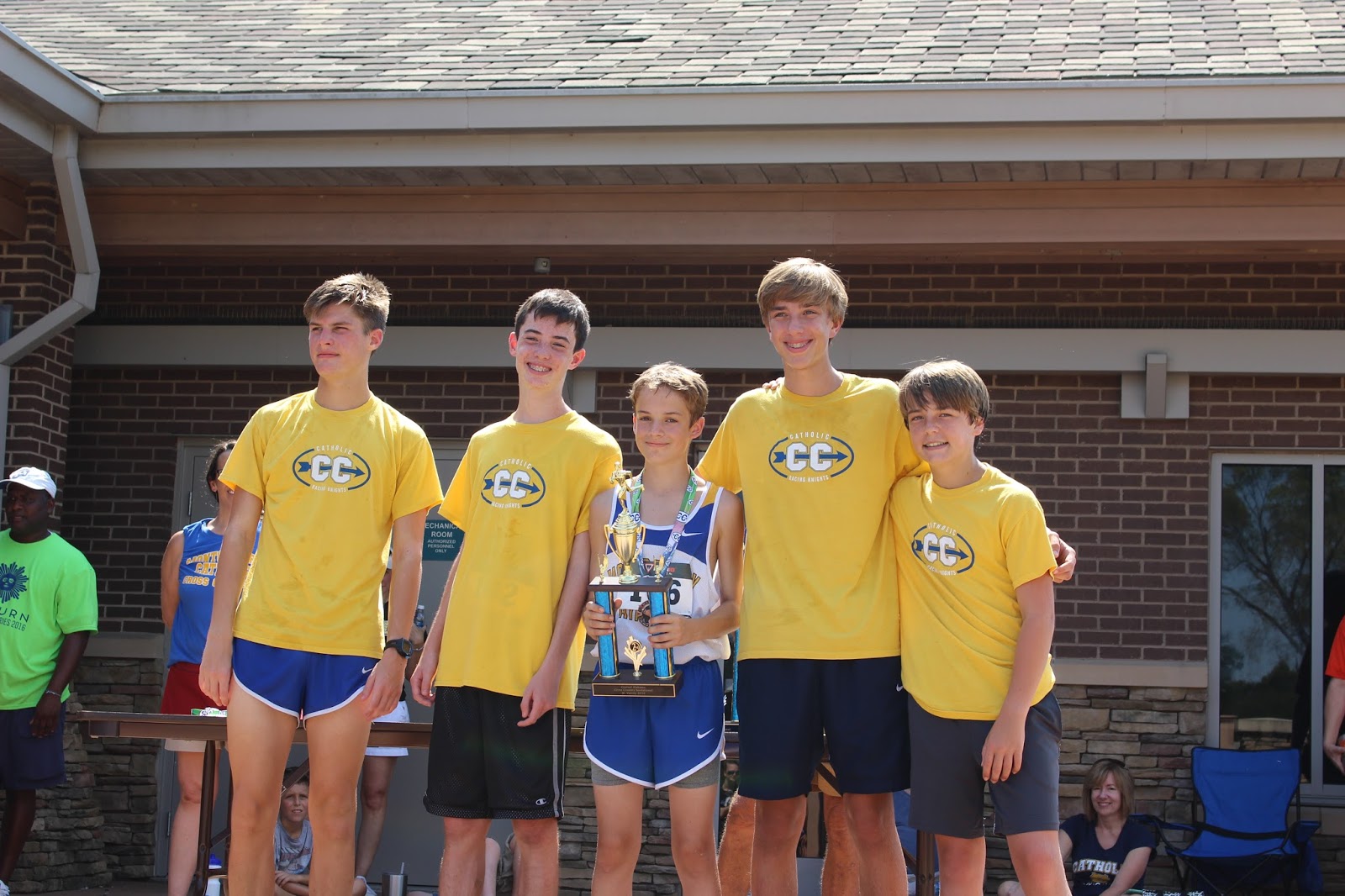 Amaris Tyynismaa, a sophomore at Catholic crossed the finish first for the girls with a time of 18:56.62 on the unseasonably hot Saturday in September, with tempatures hitting the mid-ninties. Tyynismaa’s teammates helped push for the team with two more top ten finishes, Isabelle Cochran at 21:10.40, Grace Leslie finishing at 21:36.46. Rounding out Catholic’s girls team were: Katie Galvin, Katelyn Stark, Annabel Starrett and Chloe Smith who all placed in the top 25.