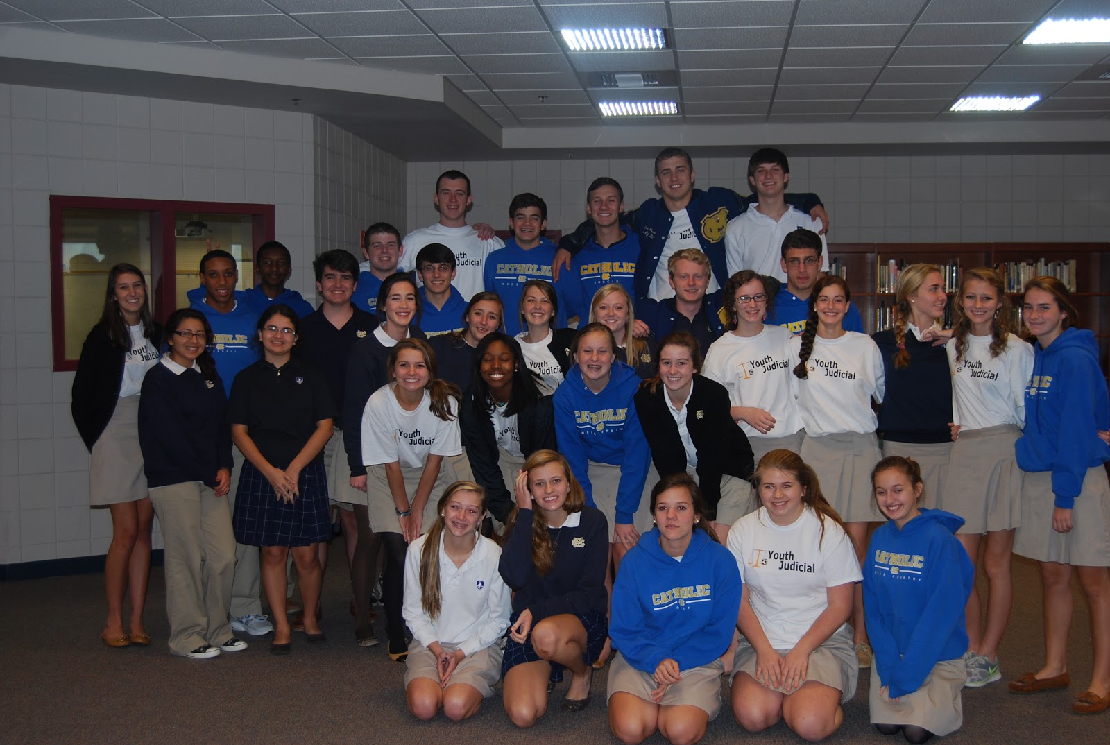 After several weeks of preparation that included memorizing depositions, preparing direct and cross examination questions, attending officer training and long team practices, a total of 43 Montgomery Catholic Preparatory School students participated in the 2012 YMCA Youth Judicial Conference, which was held November 10-11, here in Montgomery. These students, along with their attorney coaches, worked diligently to prepare either the prosecution or the defense side of the case. Trials were held in the chambers of the Federal Courthouse of the Middle District of Alabama. While the competition was stiff, our students fared extremely well! The following 6 teams competed: