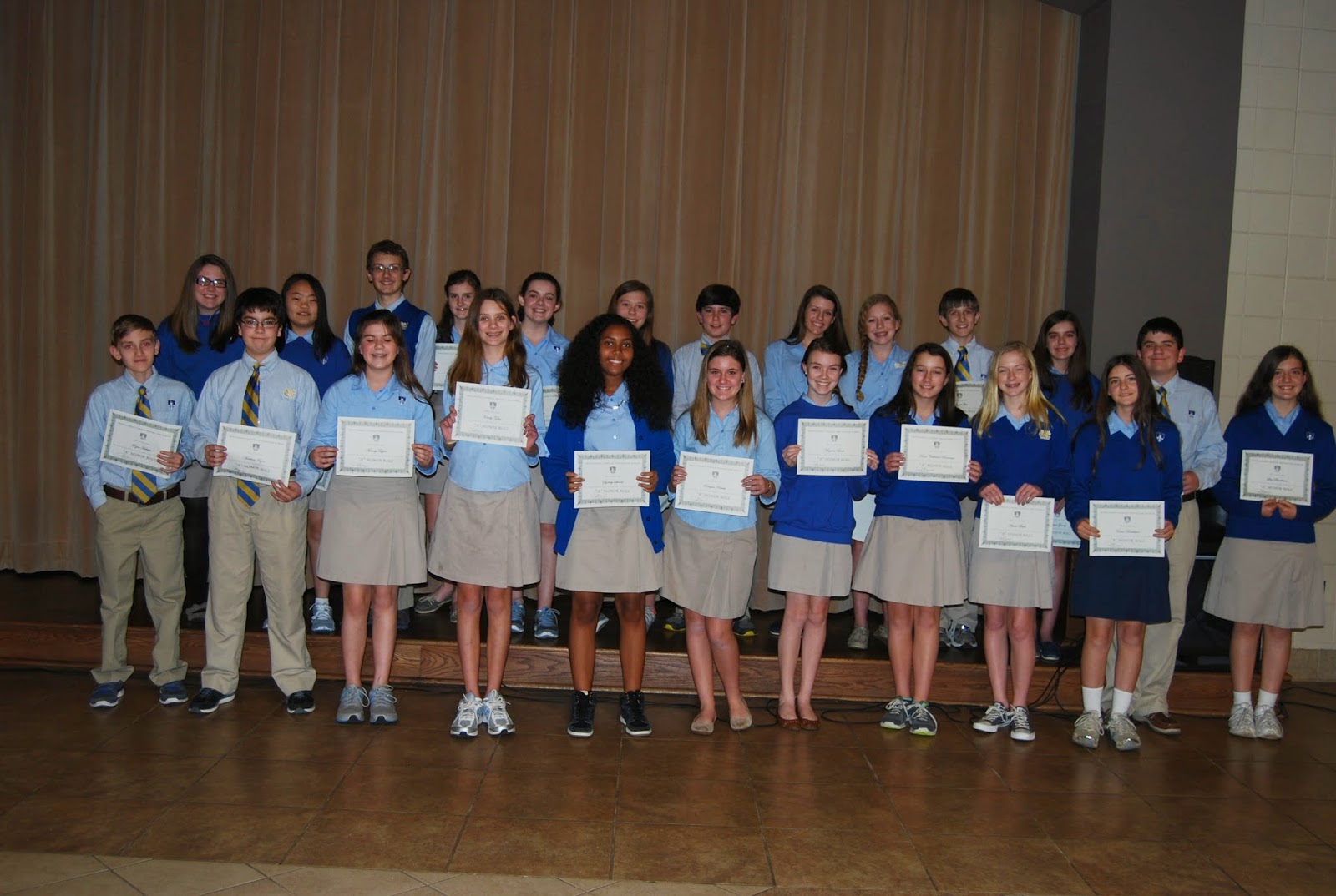Montgomery Catholic Preparatory School announced their top students during an Honors Assembly on Friday, January 10. Students who attained A Honor Roll and A-B Honor Roll during the first semester were called to receive their certificates during this special ceremony held in the Dolly Barranco Activity Center at 2:30 p.m. The A Honor Roll students for 1st Semester 2013-2014 are: Ann Bach, Anna Catherine Barranco, Erica Blackburn, Lita Blackburn, Austin Collett, Katie Fischer, Jacob Flowers, Emma Gandy, Jonah Gier, Reagan Herbek, Ryne Herbek, Jenni Morgan, Anna Nutting, Lauren Oates, Henry Petters, Huynjoo Rho, Zoe Rutland, Virginia Speirs, Sydney Sprowl, Annabel Starrett, Emily Talbot, Matthew Taylor and Melody Taylor.