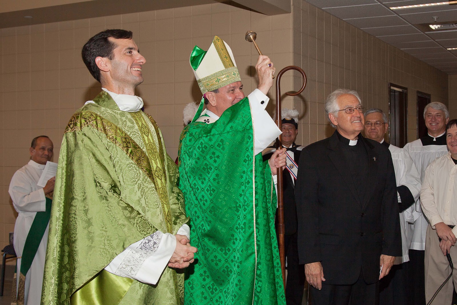 The dedication ceremony began with Mass at 11 AM at Holy Spirit Catholic Church, followed by the dedication and blessing of the complex by Archbishop Thomas J. Rodi. The Pastor of Holy Spirit, Rev. Patrick R. Driscoll, welcomed guests as the ceremony began. Special recognition and speakers included: Rev. Msgr. F. Charles Troncale, Pastor Emeritus; Mr. Nap Barranco, Chairman of the Options Committee; and Mrs. Anne Ceasar, President of Montgomery Catholic Preparatory School; all of whom spoke of the excitement of the project and the success and joy of opening a new school. The celebration concluded with classroom tours and lunch in the Parish Hall. The hosts of the day’s events were: Holy Spirit’s Pastoral Council, Finance Council, Building in the Spirit Committee and the Knights of Columbus.