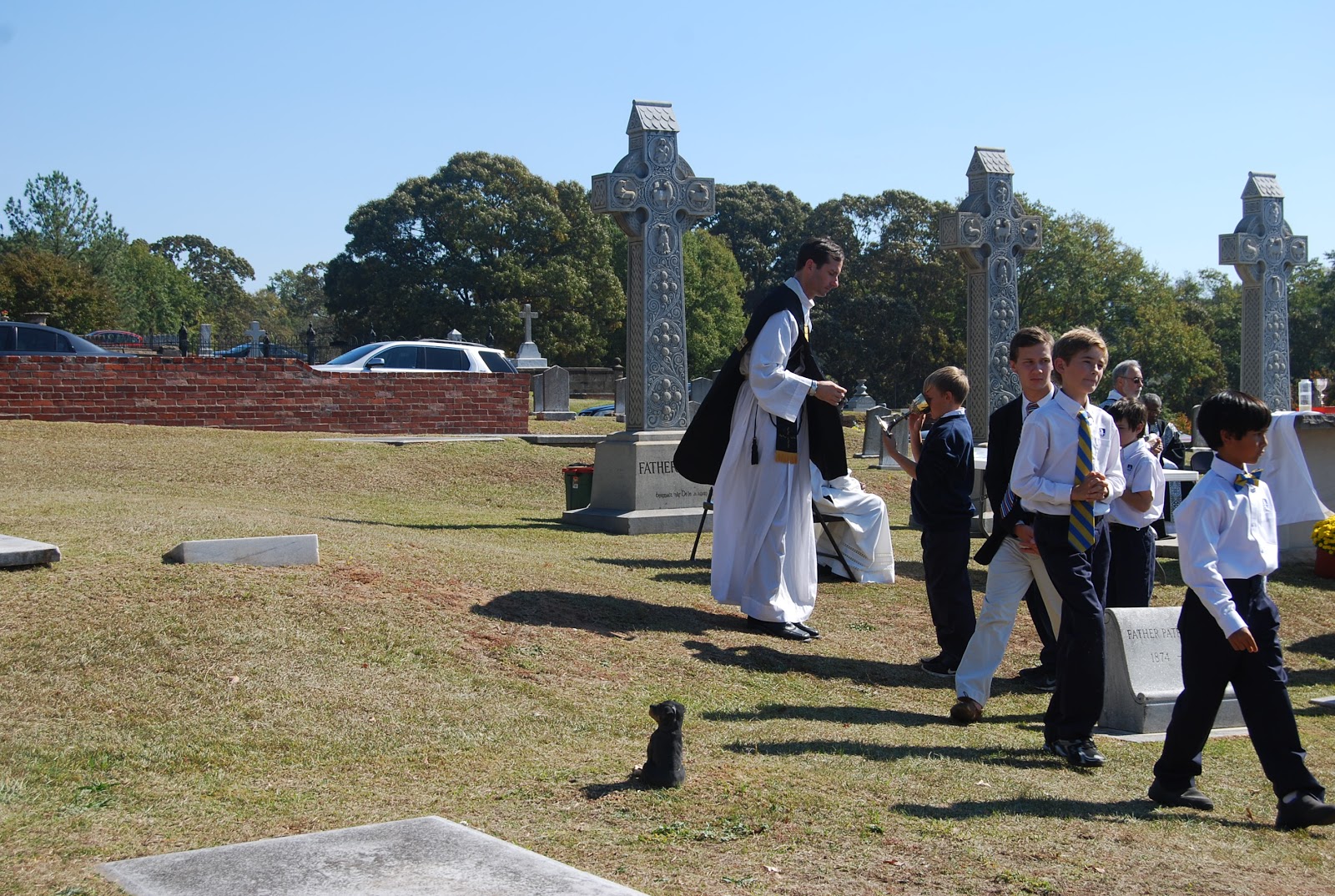 Montgomery Catholic Preparatory Students joined other members of the Catholic Community to celebrate Mass on All Souls Day at St. Margaret’s Cemetery in downtown Montgomery on November 2, 2012. Celebrating the Mass were Father Pat Arensburg, Father David Carucci, Father Patrick Driscoll, Monsignor Charles Troncale, Father Augusty Puthanpura with Deacon Jim Labadie. The MCPS Senior class, along with the Middle School SGA Officers & Elementary Student Council officers attended the Mass commemorating the faithful departed.