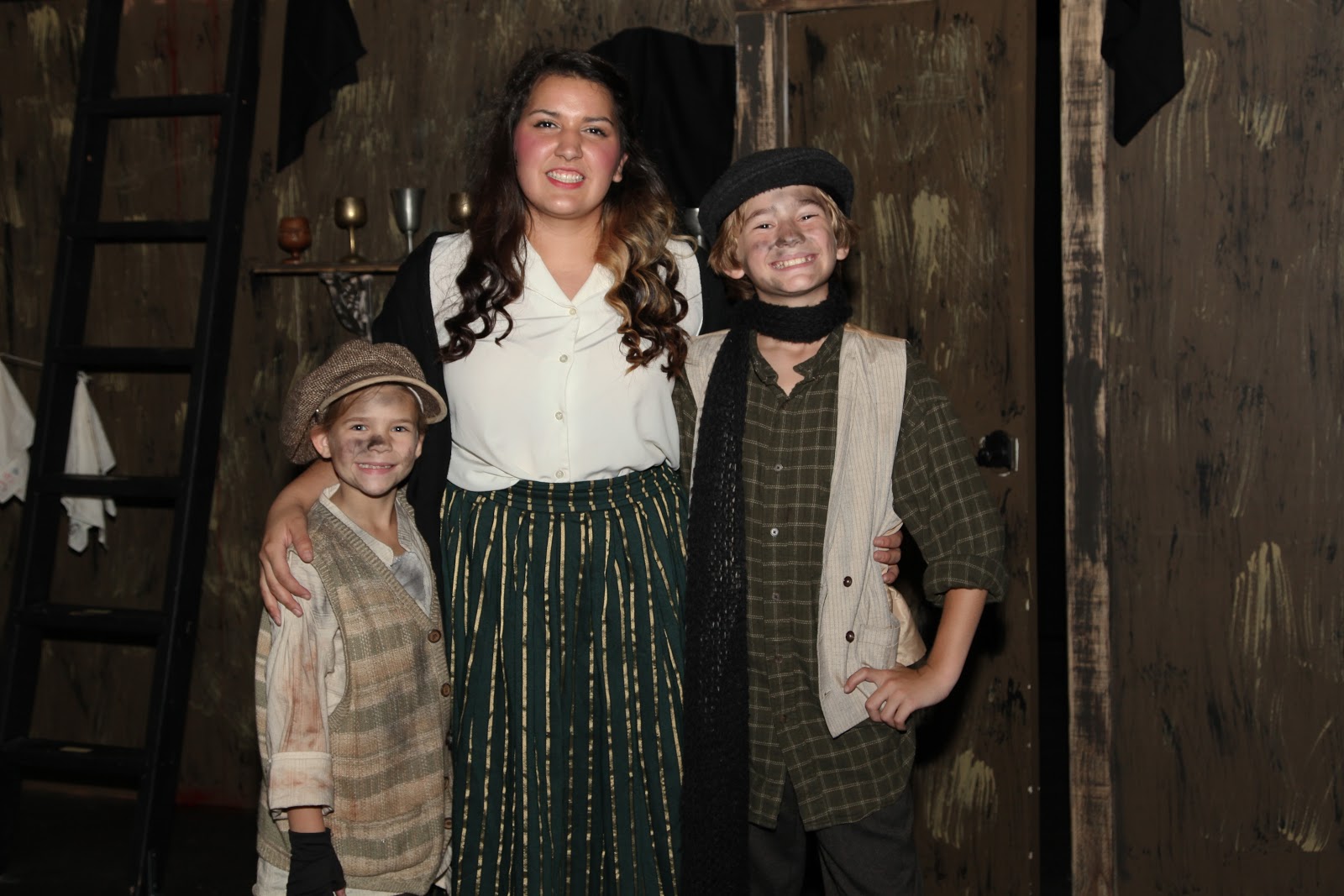 Photo Caption: Montgomery Catholic Students perform in Oliver! at Faulkner Dinner Theater: Emily Klinger, 3rd grader; Alicia Ruth Jackson, Class of 2011; Matthew Klinger, 6th grader.