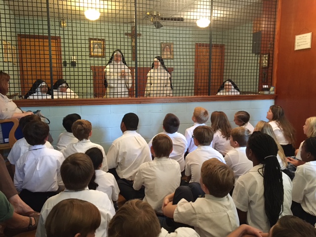 The Montgomery Catholic St. Bede campus sixth grade class visited the Dominican Monastery of St. Jude in Marbury, Alabama on September 29, 2016. The students were able to celebrate Mass at the Monastery, and were able to visit with the Dominican Nuns that live there after Mass. The class enjoyed a picnic lunch on the grounds after their visit and were happy that their principal Miss Laurie Gulley and Father Alex Valladares from St. Bede Parish were able to join them on their field trip. Pictured are: