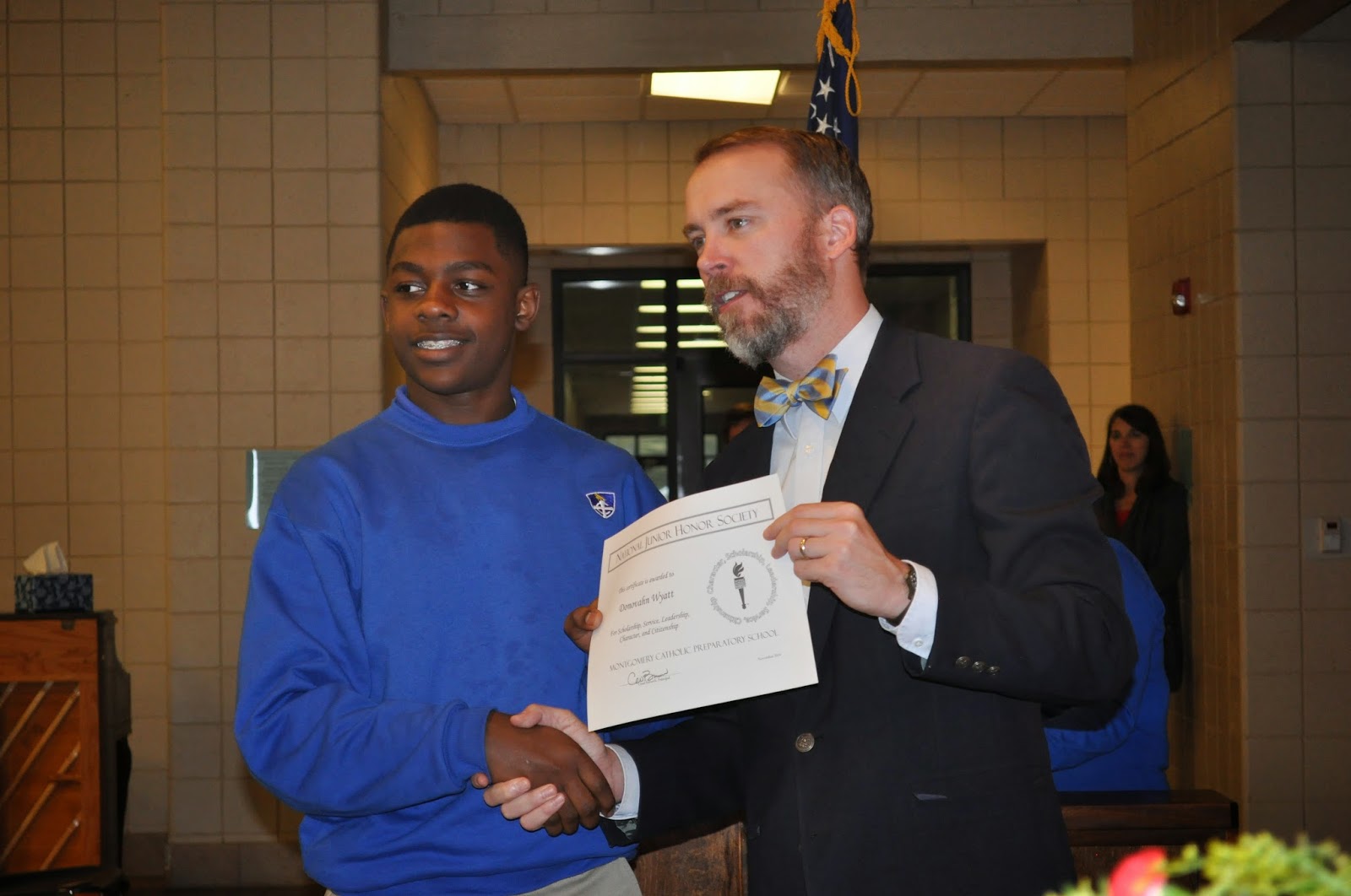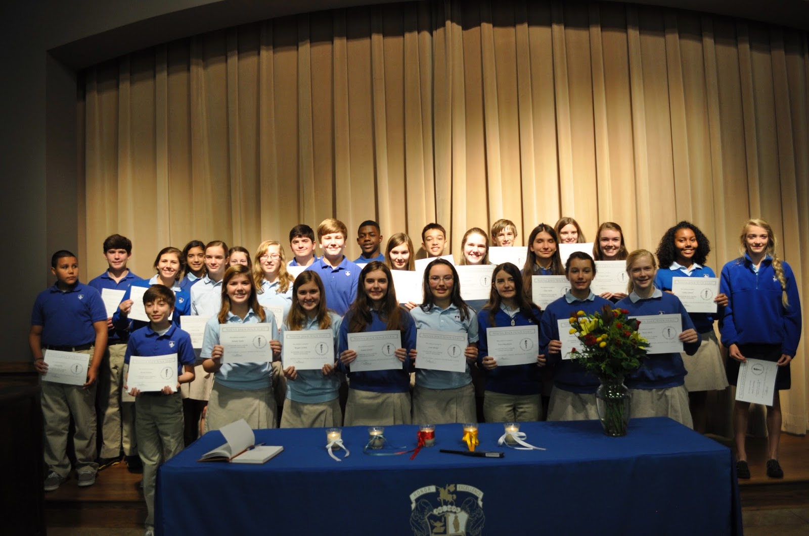 Montgomery Catholic Preparatory School inducted 27 new members into their chapter of the National Junior Honor Society (NJHS) during a ceremony held on Monday, November 17, 2014. More than just an honor society, these 27 eighth grade students have demonstrated outstanding performance in the areas of scholarship, service, leadership, character, and citizenship.