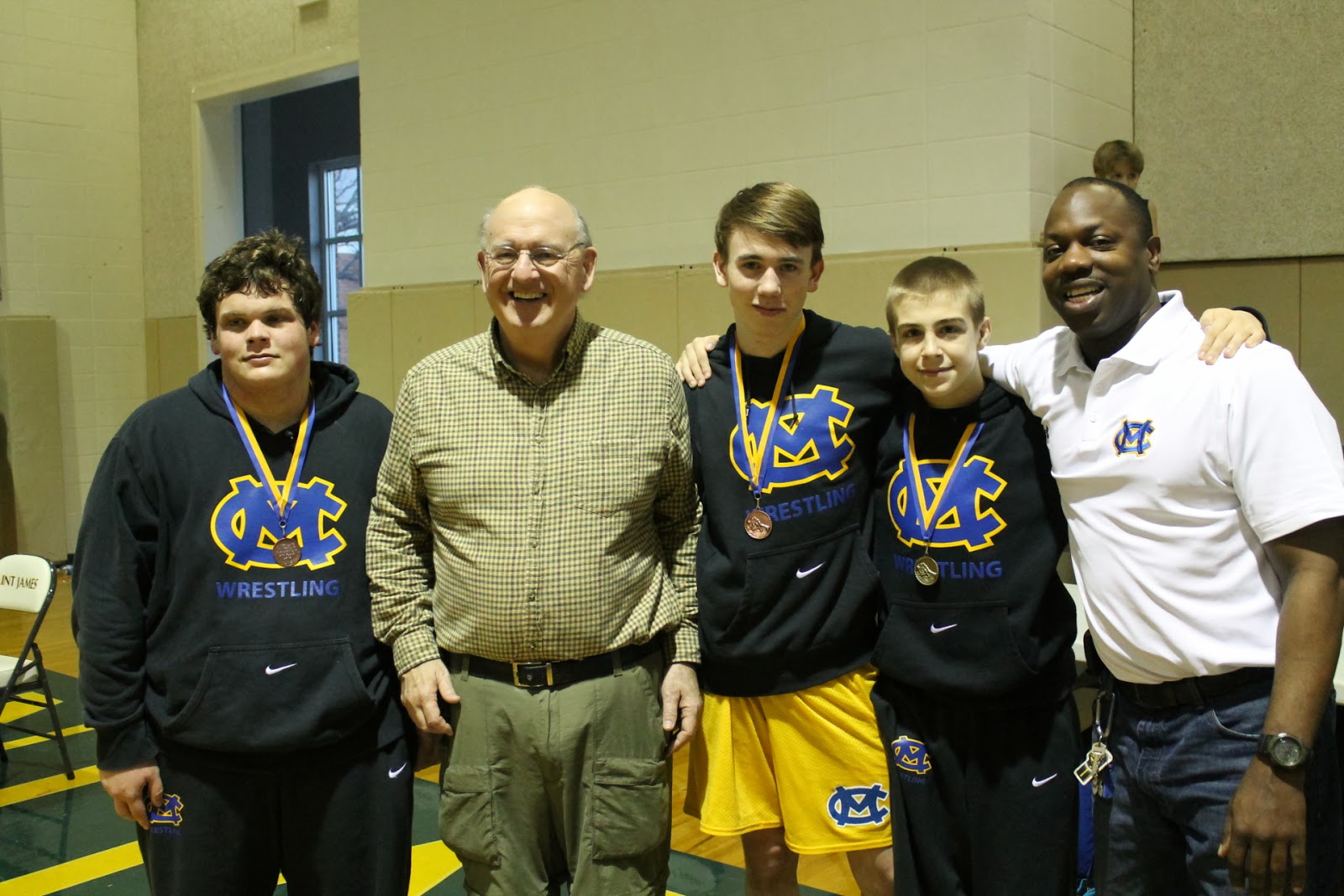 | John Haynes (4th Place), Julian McPhillips, Gabe Keating (4th Place), Zachary Van Alst (1st Place & MOW), Coach Coy Hunter. |