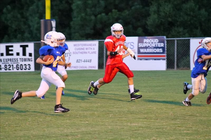 The Pee Wee game had the Knights winning 20-6. In the win, Nathan Downes and Christian “Cat” Ivey scored touchdowns. Easton Wilcoxson scored on a two point conversion. Also in the game, 12 different Knight players ran the ball. Many for their first time in their career.